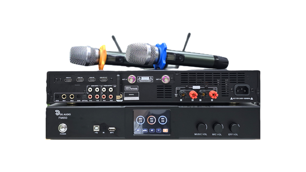 Amplifier karaoke số DS audio FM650 công suất mạnh mẽ, âm thanh chân thực, phù hợp cho phòng hát gia đình & kinh doanh